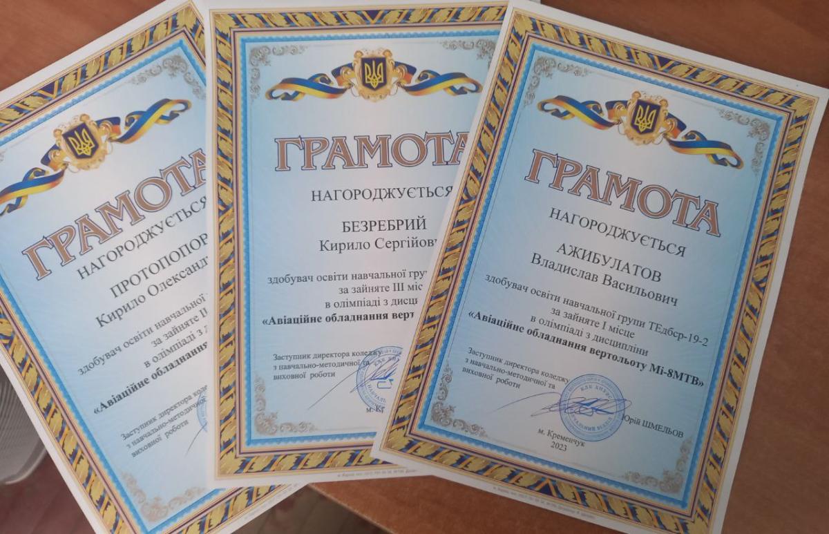 Переможцями олімпіади з дисципліни «Авіаційне обладнання вертольоту Мі-8МТВ» стали: