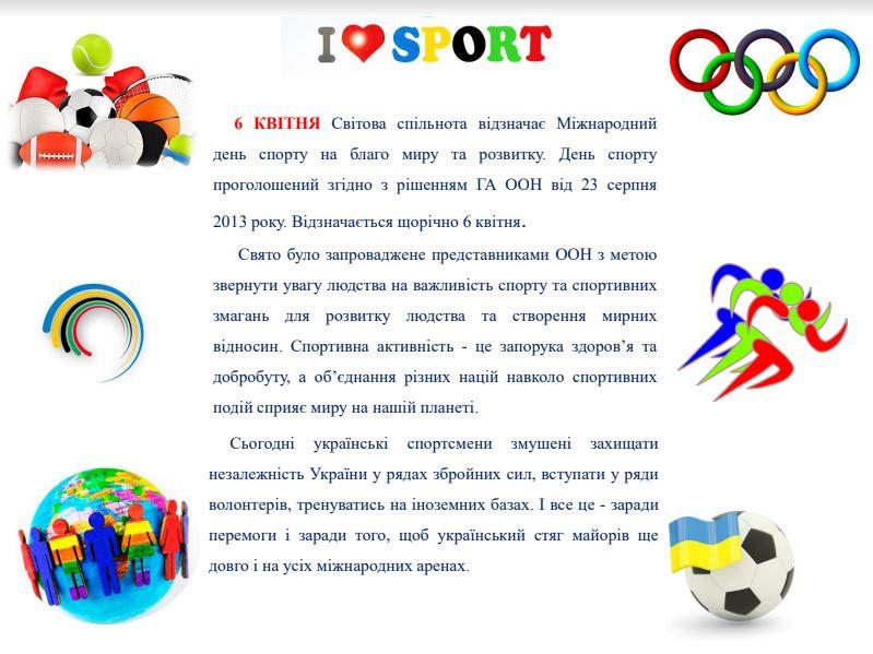 Міжнародний день спорту на благо миру та розвитку.