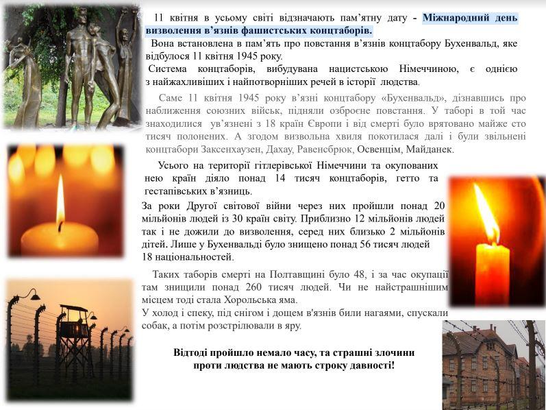 Міжнародний день визволення в’язнів фашистських концтаборів.