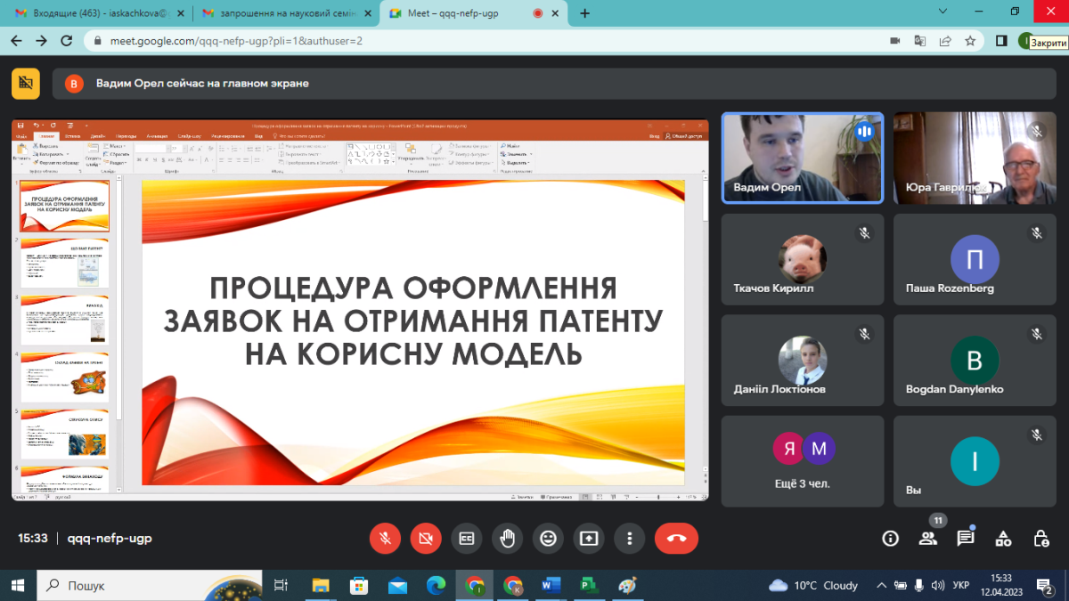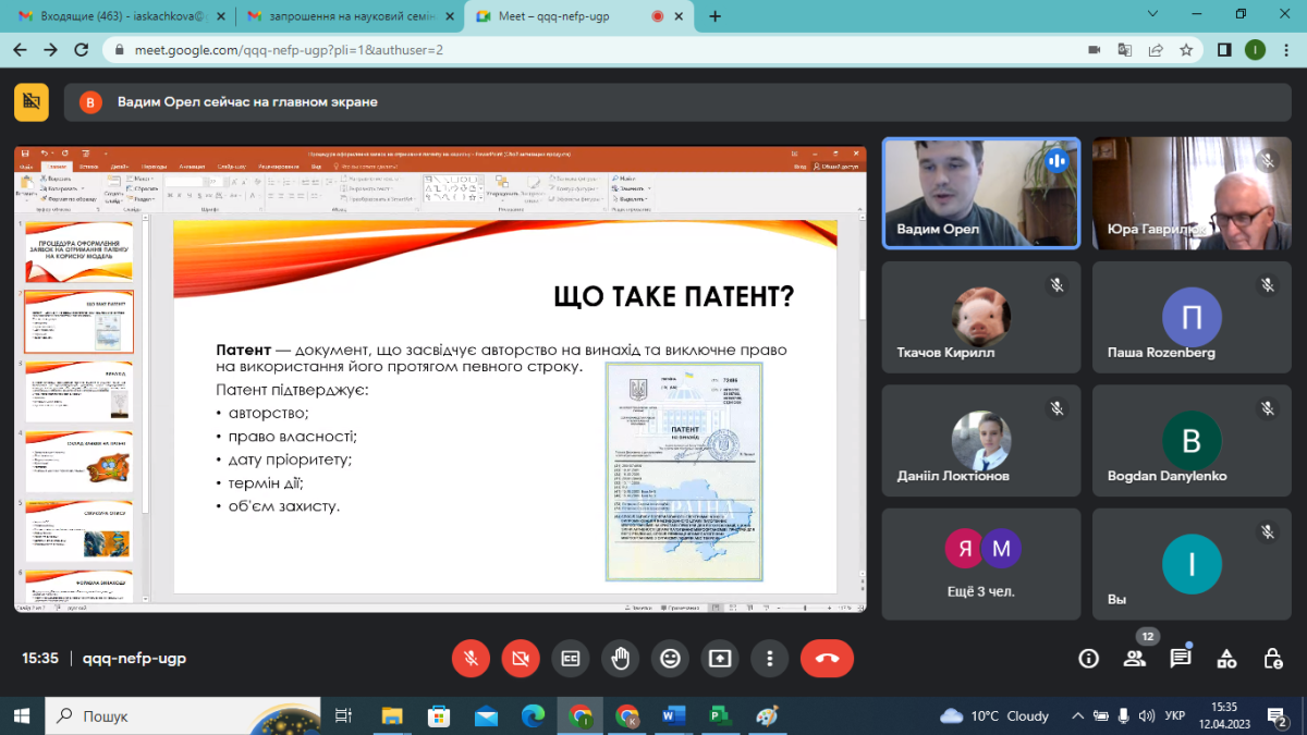 Під час заходу розкрито основний понятійний апарат щодо охоронних документів, наведено алгоритми патентного пошуку та отримання патенту на корисну модель, а також наведені практичні приклади заповнення форм для надання їх для розгляду в УКРНОІВІ.