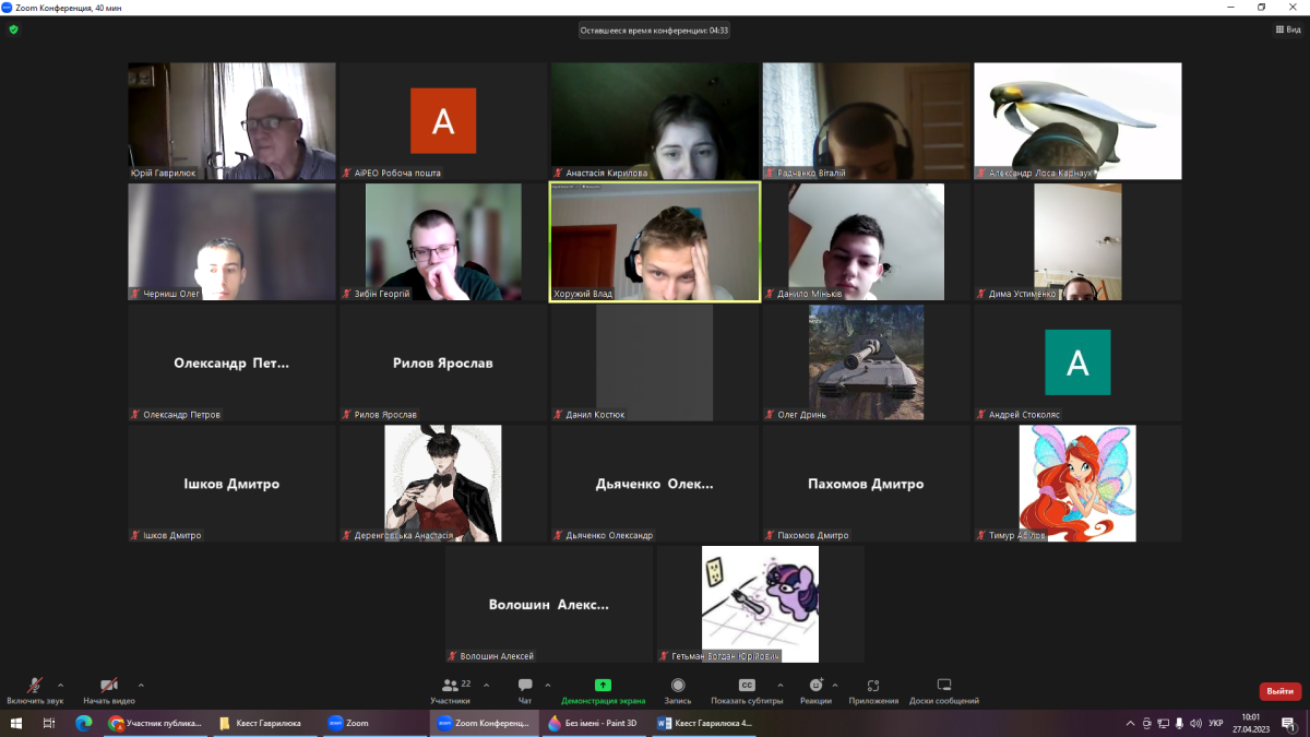Заняття проведено у форматі конкурсу тестових завдань. Змагались дві команди здобувачів. Активну участь у конкурсі прийняли лідери команд здобувачі Рилов Ярослав і Кирилова Анастасія.