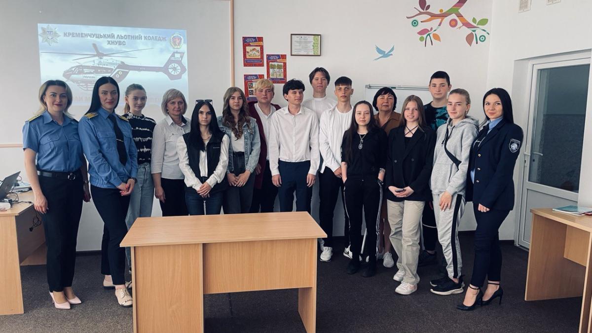 Представники Кременчуцького льотного коледжу Харківського національного університету внутрішніх справ надали детальну інформацію щодо умов вступу до навчального закладу, напрямів підготовки та спеціальностей за освітнім ступенем "бакалавр" випускників 11 класів. Наприкінці зустрічі школярі задавали багато питань, цікавило юнаків та дівчат і надання місць у гуртожитку. На всі запитання були надані кваліфіковані відповіді.