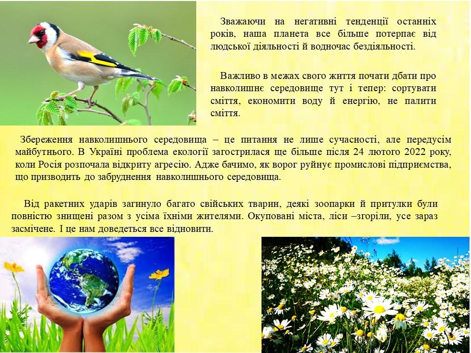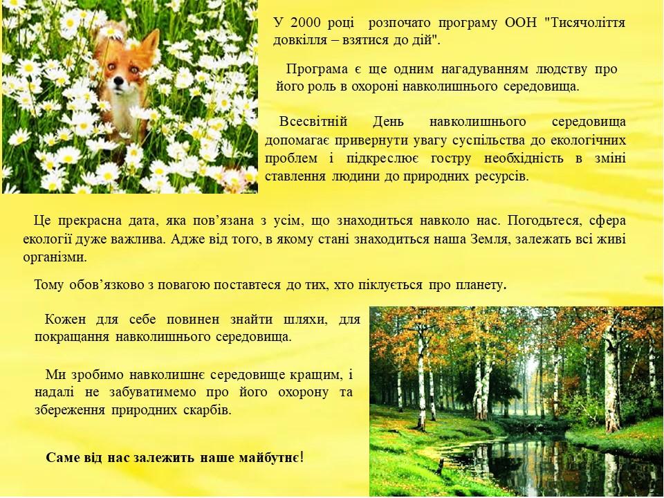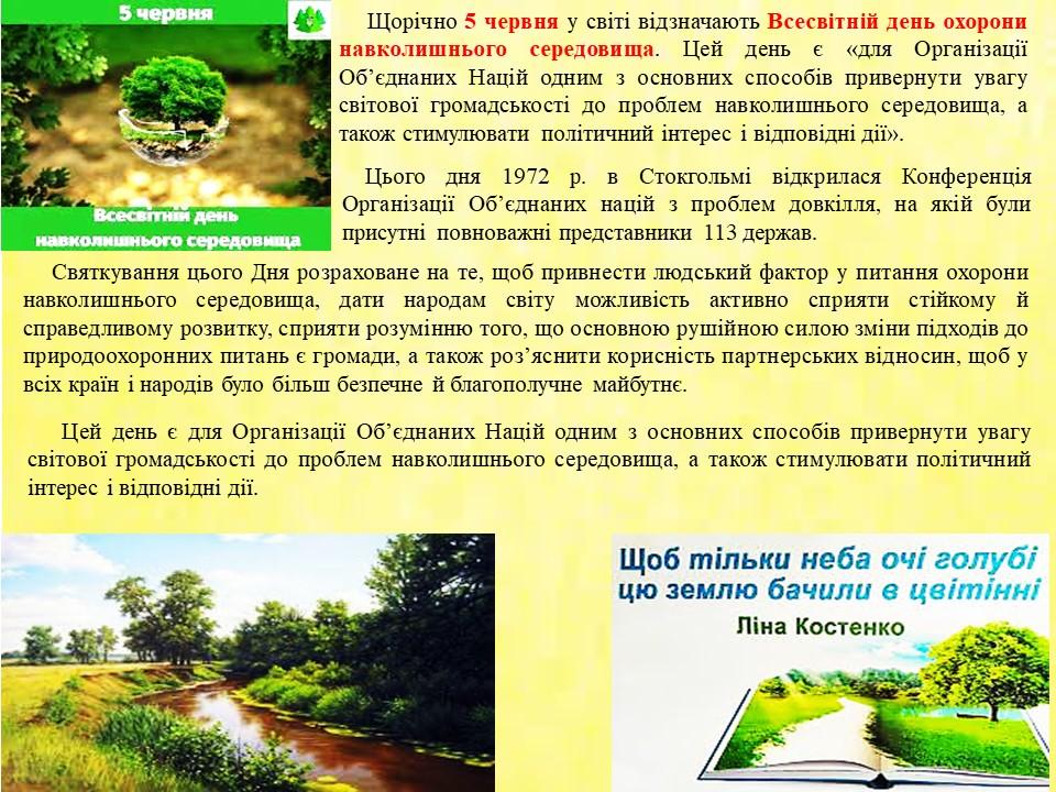 ВСЕСВІТНІЙ ДЕНЬ ОХОРОНИ НАВКОЛИШНЬОГО СЕРЕДОВИЩА