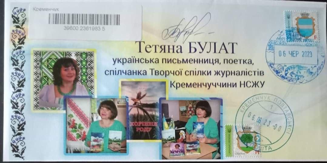06.06.2023 відбувся міський захід - урочисте погашення персонального конверту української письменниці, поетки, заступниці очільника творчої спілки журналістів Кременчуччини НСЖУ, завідувача клубу Кременчуцького льотного коледжу Харківського національного університету внутрішніх справ, керівниці народного вокального гурту "Крила" Тетяни Григорівни Булат у серії спецпогашення "Краса і велич Кременчука - видатні особистості".