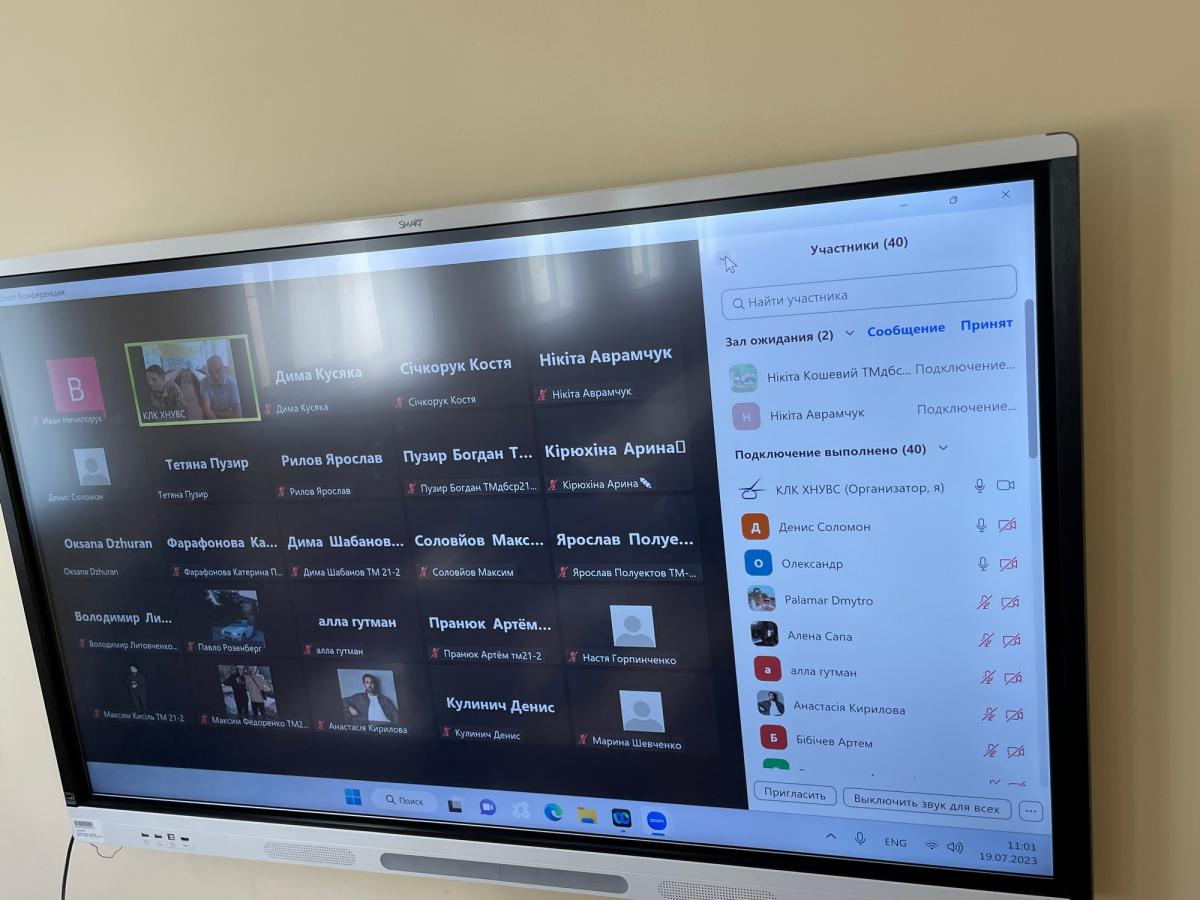 З метою національно-патріотичного виховання молоді відділом соціально-гуманітарної, виховної та профорієнтаційної роботи Кременчуцького льотного коледжу Харківського національного університету внутрішніх справ 19 липня 2023 року о 11.00 год організовано та проведено у режимі онлайн зустріч з учасником АТО з 2014 року та учасником бойових дій з 24 лютого 2022 року, в період повномасштабної агресії росії проти Народу України, старшим лейтенантом ТРО ЗСУ Бездудним Андрієм Миколайовичем.