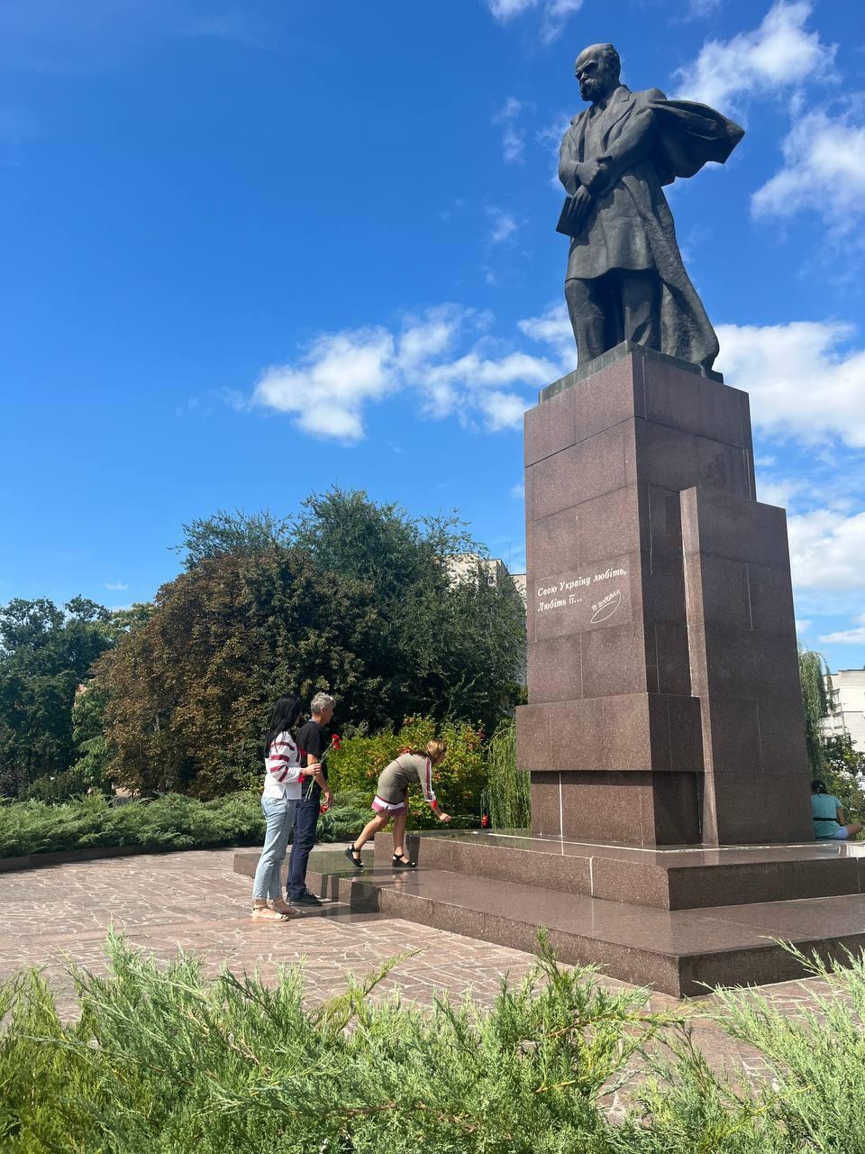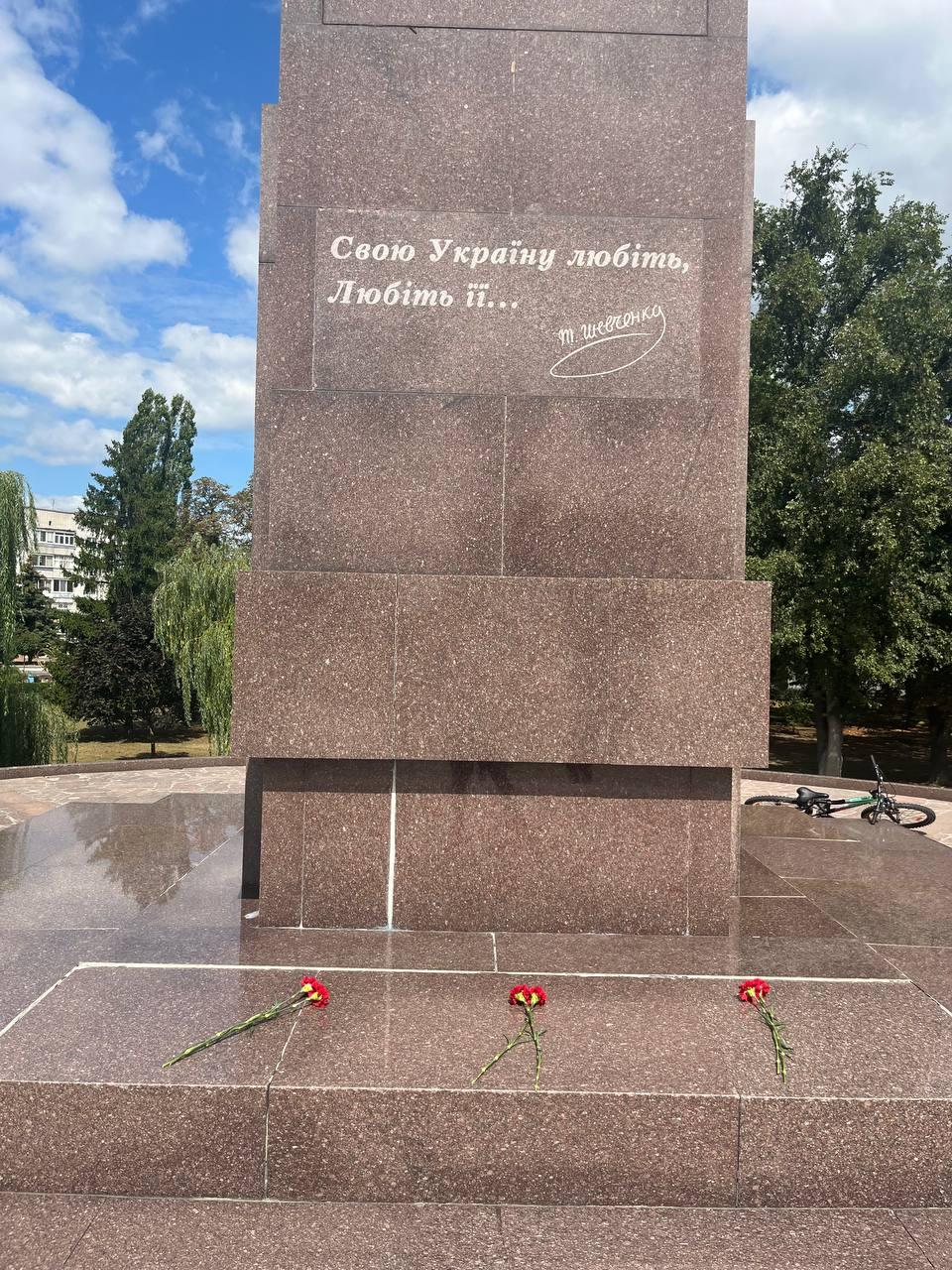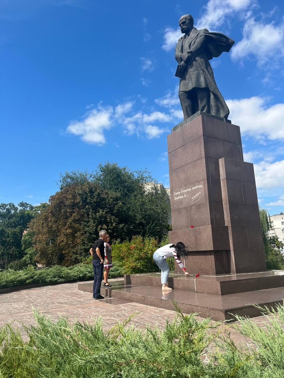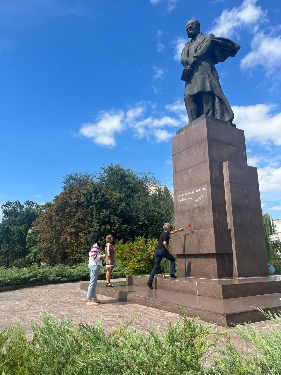 З нагоди святкування Дня Незалежності України працівники відділу соціально-гуманітарної, виховної та профорієнтаційної роботи Кременчуцького льотного коледжу Харківського національного університету внутрішніх справ поклали квіти до памʼятника Тарасу Шевченку, видатного українського поета і художника, що знаходиться у парку Ювілейний. Віримо в Перемогу українського народу!