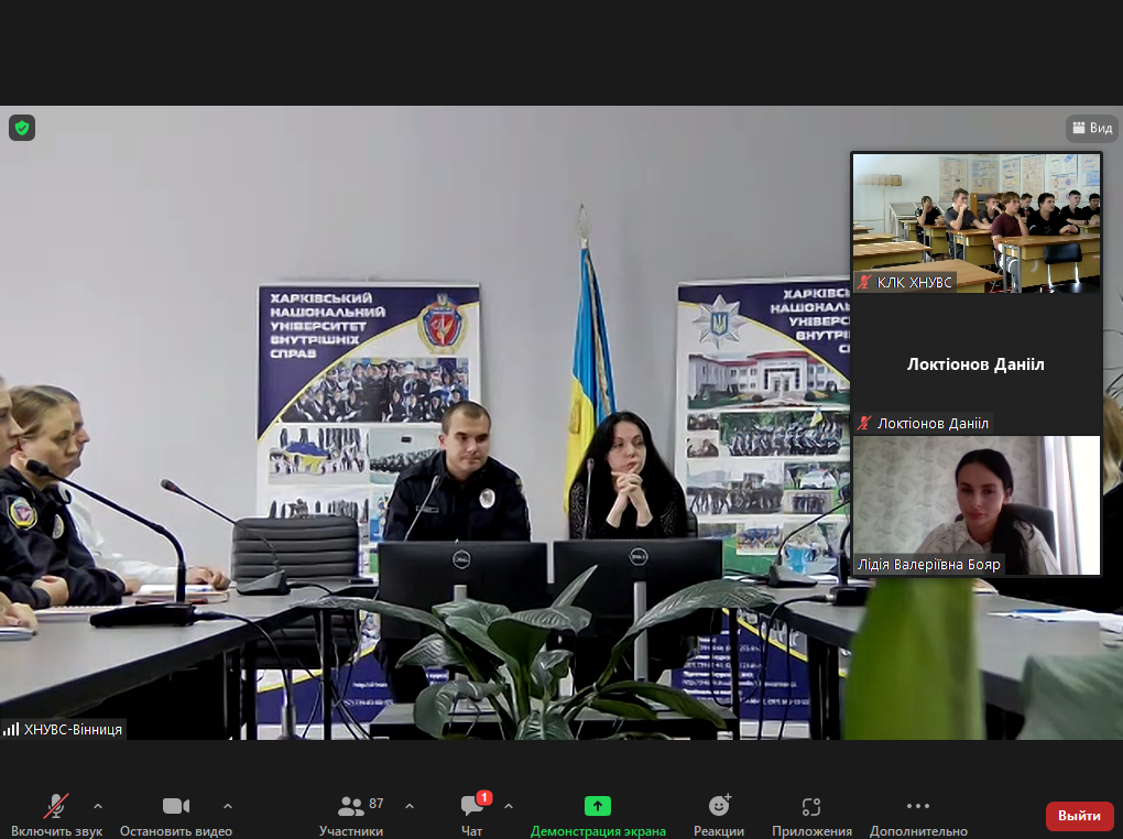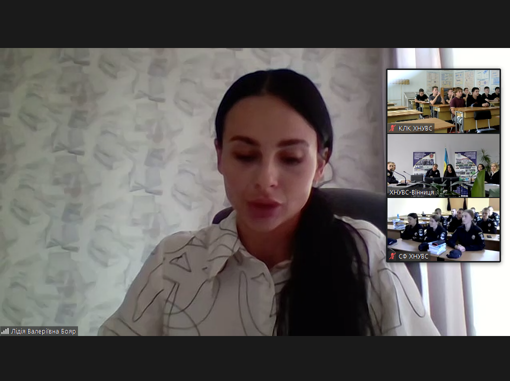 21 вересня 2023 року, о 15 год. 30 хв. в рамках засідання Наукового товариства студентів, курсантів, слухачів, аспірантів, ад’юнктів, докторантів і молодих вчених ХНУВС відбулась лекція про стратегічні молодіжні проєкти, яку провела Лідія Бояр – кандидат економічних наук, експерт «Українського молодіжного дому» по роботі з молоддю щодо грантових програм. Метою лекції було надання можливостей для молоді щодо отримання фінансових ресурсів з метою підтримки демократичного розвитку України та зміцнення зв’язків між молоддю України та країн ЄС. В заході взяли участь начальник відділу організації наукової роботи та гендерних питань КЛК ХНУВС, к.т.н. Сергій Владов, старший науковий співробітник відділу організації наукової роботи та гендерних питань КЛК ХНУВС, к.е.н. Юлія Рудь, а також більше 30 здобувачів освіти, з яких 14 здобувачів освіти були присутні на заході очно