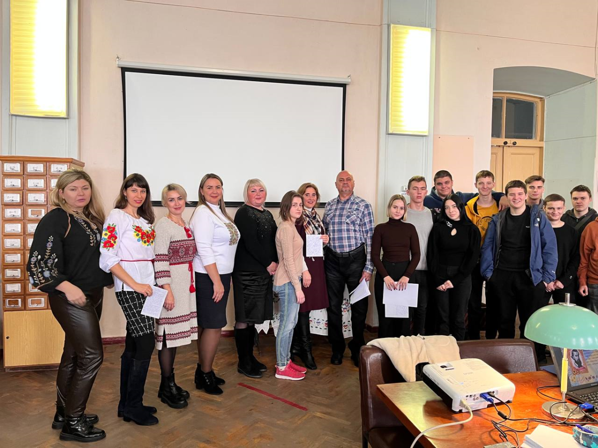 Захід організувала та провела викладачка філологічних дисциплін Віра Сіора за участю завідувачки бібліотеки Ніни Попової. Чудова атмосфера панувала у бібліотеці коледжу, адже не лише викладачі, бібліотекарі та здобувачі освіти мали за честь писати Радіодиктант, а й працівники різних відділів коледжу: начальник навчального відділу Алла Білик, завідувачка відділення загальноосвітньої підготовки Юлія Кошева, завідувачка відділення психологічного забезпечення відділу кадрового забезпечення Оксана Тріско та фахівець відділення психологічного забезпечення Карина Франкевич, начальник відділу соціально-гуманітарної, виховної та профорієнтаційної роботи Руслана Бабіна разом з працівниками відділу, викладачка математики Марина Пузир і просто – всі бажаючі згуртуватися у воєнних умовах, продемонструвати силу та міць української нації!