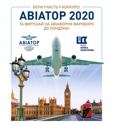 Проект «Авіатор 2020» проводиться Фондом Бориса Колеснікова. Запрошуємо до участі всіх курсантів коледжу ХНУВС денної форми навчання технічних і авіаційних спеціальностей та молодих фахівців до 25 років. Переможці конкурсу у липні 2020 року відвідають Міжнародний авіасалон FARNBOROUGH 2020 у Лондоні. За детальною інформацією звертатися до керівника наукового відділу коледжу - Петченко Марини Валентинівни (каб 212, моб. тел. 0679518344).