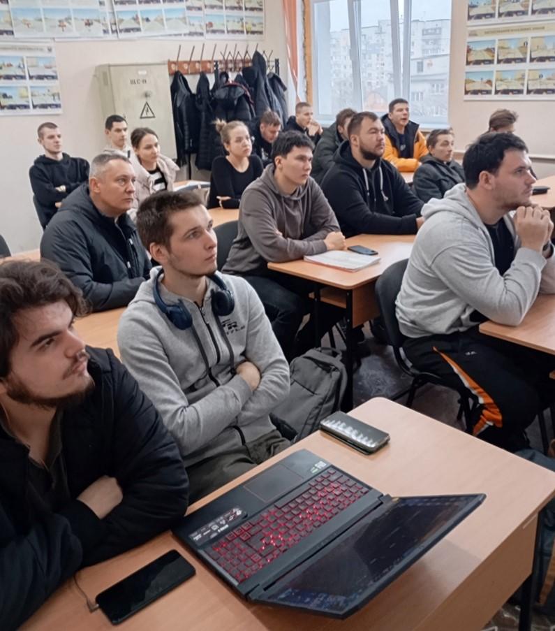 Надалі здобувачам освіти розповіли про перспективні напрями розвитку авіапарку ДСНС і надано відповіді на поставлені питання.