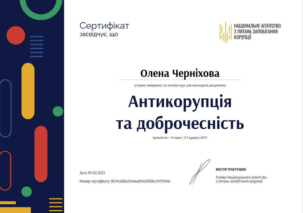 Представники Кременчуцького льотного коледжу Харківського національного університету внутрішніх справ успішно пройшли курс «Антикорупція та доброчесність» на платформі Національного агентства з питань запобігання корупції.