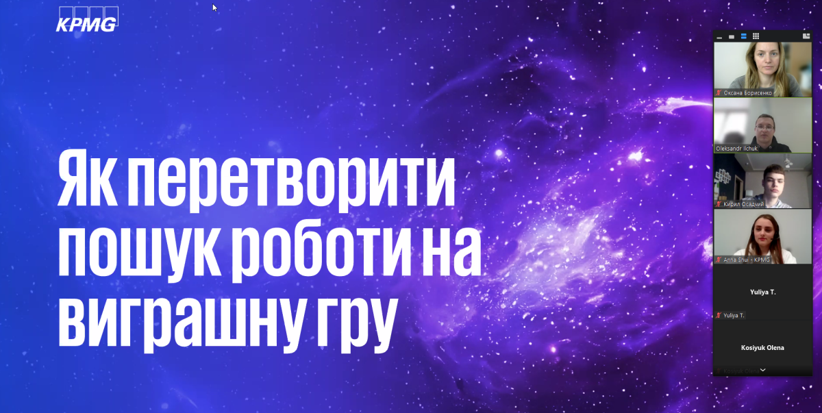 - ярмарок вакансій та стажувань – пропозиції від топових компаній, серед яких SoftServe, Carlsberg, Brainstack_, EY, Arterium, Genesis, Melexis, Sayenko Kharenko, BlackShield Capital, Logity, Vodafone, Idea Bank, Clarity, Nexia DK, BAT, TCM Group Ukraine, BDO, Universe, ProCredit Bank, Yasno, Kyiv Strategy Consulting LLC, Boosta, AC Crowe, Luxoft, Baker Tilly, Peterka & Partners, KPMG, Pravex Bank, Mazars, appflame, Kreston, Renesas Electronics, Credit Agricole, Materialise і Deloitte.