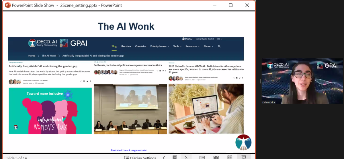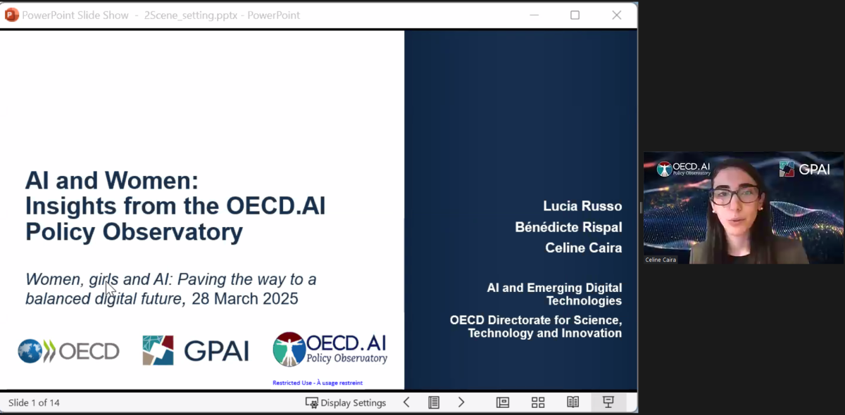 Спікерами виступили: провідний спеціаліст з обробки даних у регіоні EMEA в Дослідницькому інституті економічного графіка LinkedIn Розі Гуд, старший директор із політики та інклюзії Mila Анна Ян, економіст і політичний аналітик, відділ штучного інтелекту Відділу науки, технологій та інновацій (STI) ОЕСР Селін Кейра, старший аналітик і заступник керівника відділу Директорату ОЕСР з питань освіти та навичок Стефан Вінсент-Ланкрін, модератор - посол ОЕСР з гендерних питань освіти та старший радник Директорату глобальних відносин та співпраці ОЕСР Марта Енсинас-Мартін.