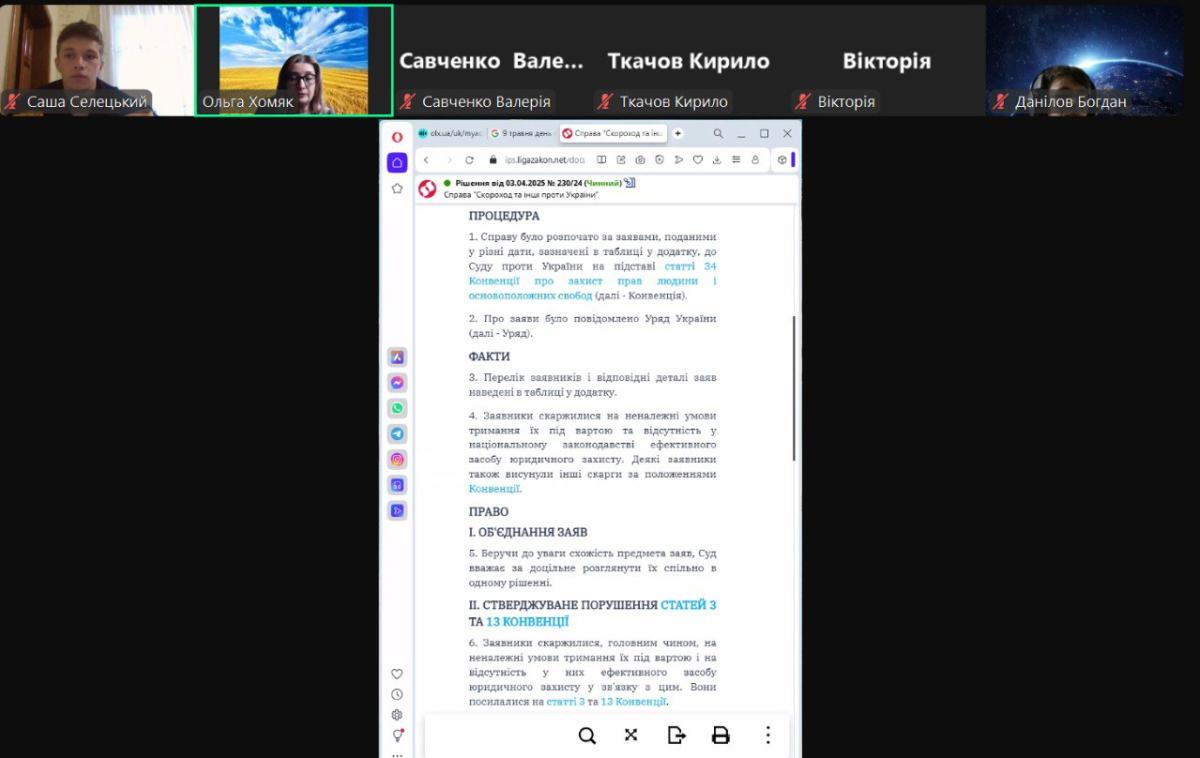 13 травня 2025 року в навчальній гр. Пдср-24-1б у формі інформаційної хвилини викладачем Ольгою Хомяк були розглянуті рішення Європейського суду з прав людини на звернення «Ігнатов проти України».
