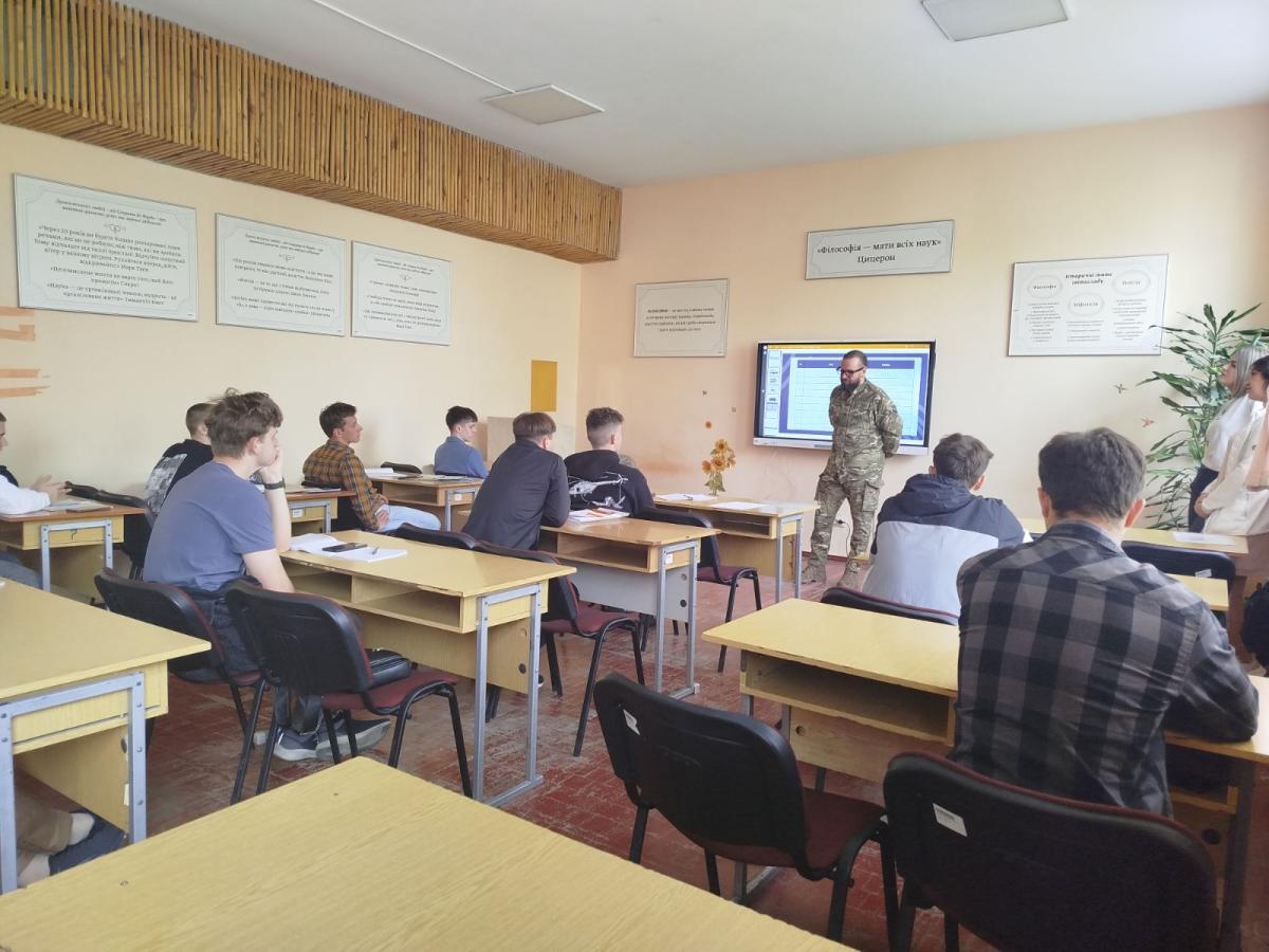 5 травня 2025 року викладачкою кафедри управління, соціально-гуманітарних та фундаментальних дисциплін Дар'єю Рябцевою разом з представником волонтерського руху, діючим парамедиком, громадянином Австрії містером Беном, фахівчинею групи міжнародних зв'язків та міжвузівської роботи Світланою Стельмах, перекладачкою групи міжнародних зв'язків та міжвузівської роботи Юлією Онищенко було проведено бінарне практичне заняття з навчальної дисципліни «Іноземна мова за професійним спрямуванням» на тему: «Досвід пілота на війні: виклики, небезпеки, мотивації (особисті теорії, моральна підтримка), як зберігати холодний розум в стресових ситуаціях» для здобувачів вищої освіти першого курсу освітньо-професійної програми «Аеронавігація. Flight Navigation». Під час зустрічі запрошений гість, пан Бен, поділився власним досвідом роботи в умовах війни. Він розповів про свою участь у гуманітарних та рятувальних місіях, виклики, з якими стикається під час бойових дій, а також методи підтримки морального стану у стресових ситуаціях. Особливу увагу пан Бен приділив темі самоконтролю, важливості командної взаємодії та міжособистісного спілкування в екстремальних умовах.