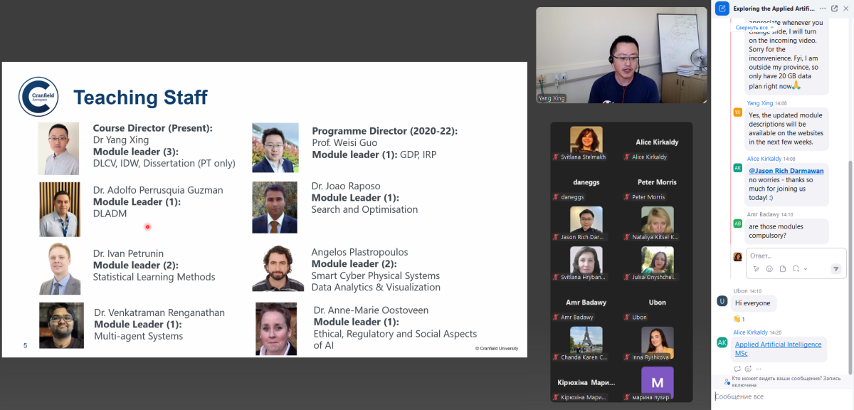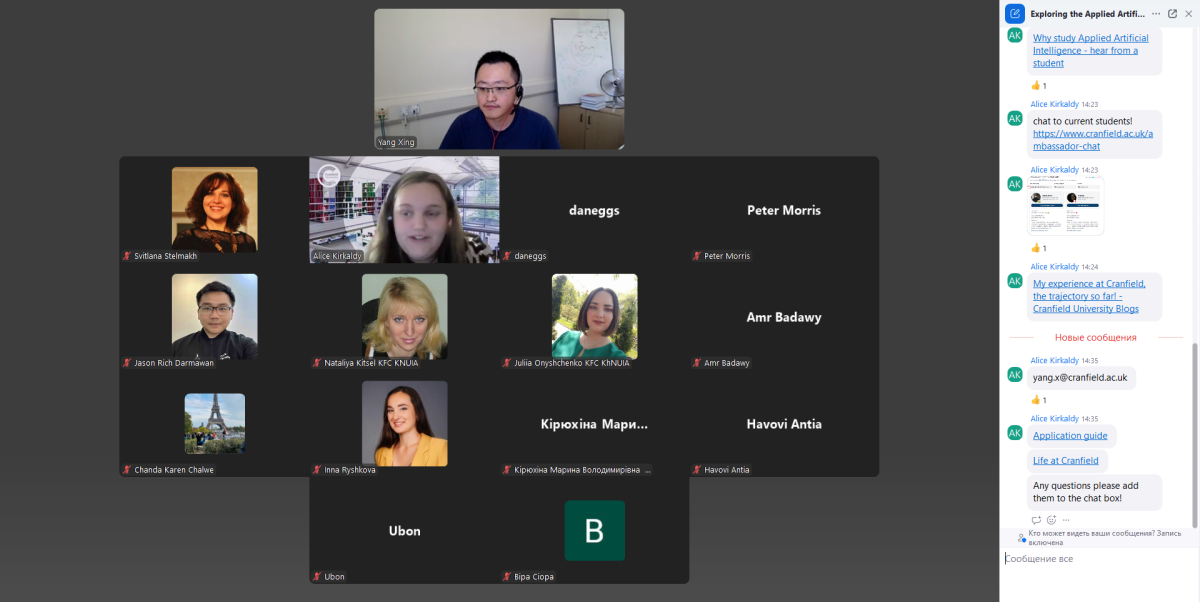 Окрім презентації, була організована жива сесія запитань та відповідей (Q&A), на якій учасники могли отримати вичерпні відповіді на свої запитання безпосередньо від представників Університету Кренфілду.