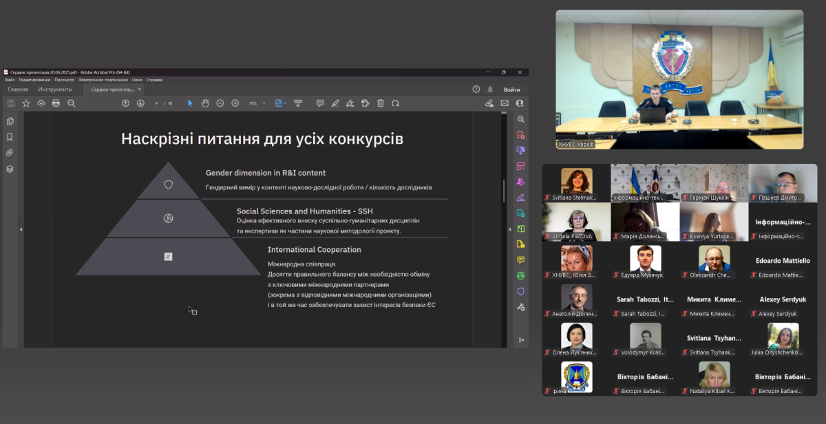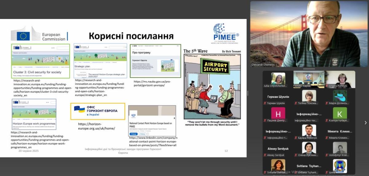 20 червня 2025 року відбувся інформаційний захід, присвячений майбутнім конкурсним можливостям програми "Горизонт Європа" за напрямом «Цивільна безпека для суспільства», що очікуються в 2025 році. Учасники заходу отримали актуальну інформацію щодо майбутніх конкурсів, пріоритетів Європейської комісії, а також можливості співпраці у межах проєктів програми.