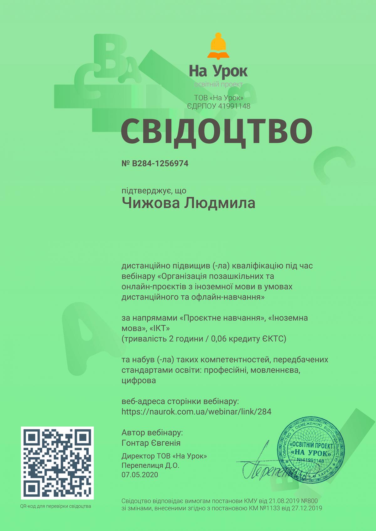 Викладач циклової комісії української та іноземної мов Кременчуцького льотного коледжу ХНУВС Людмила Чижова дистанційно підвищила кваліфікацію під час вебінару по темі «Організація позашкільних та онлайн-проєктів з іноземної мови в умовах дистанційного та офлайн-навчання» освітнього проекту «На Урок». На вебінарі розглянули основні елементи організації роботи через інтернет, дізналися про варіанти проведення дистанційних заходів, а також поглибили знання про способи зацікавлення та активізації роботи здобувачів освіти.