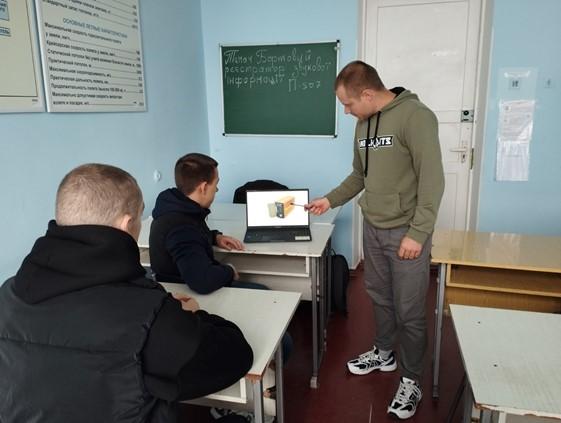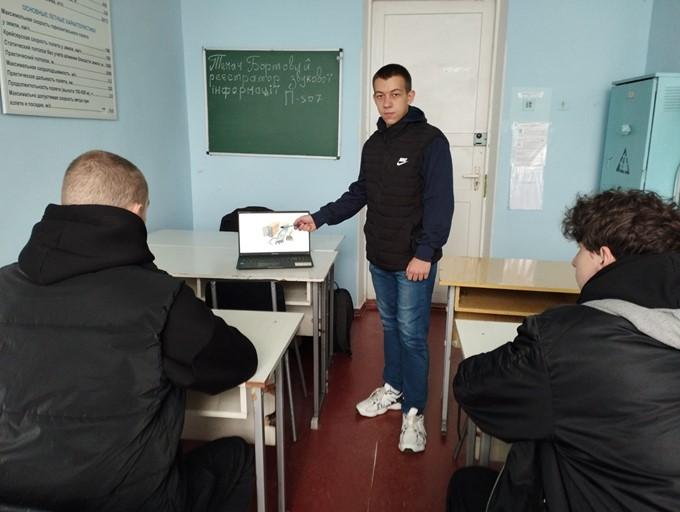 На початку заняття була проведена актуалізація опорних знань та навичок здобувачами освіти, розглянуті питання: призначення та основні технічні характеристики реєстратора П-507, склад та розміщення блоків, режими роботи, включення та контроль працездатності. Здобувачі освіти активно відповідали і долучалися до обговорення.