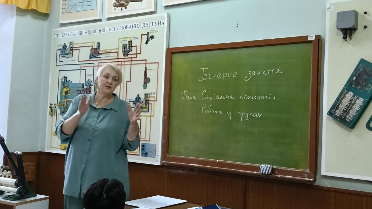 Заняття було структуровано для забезпечення плавної інтеграції авіаційних знань та психологічних аспектів. Психологом було висвітлено ключові аспекти, що мають прямий вплив на формування ефективного екіпажу БПЛА. Представлено приклади діагностичних тестів для визначення психотипу особистості (наприклад, для визначення темпераменту, акцентуації характеру, рівня стресу, рівня агресії) та їхнє застосування у авіаційній сфері. Оксана Миколаївна пояснила, як результати тестування використовуються для прогнозування поведінки оператора в критичних ситуаціях. В ході проведення бінарного заняття психологом та викладачем розкрито поняття «оптимальна пара пілот-інструктор». Було наголошено, що підбір пари ґрунтується на взаємодоповненні психологічних типів, а не на їхній однаковості. Частково розглянуто механізми виникнення конфліктів у команді та способи їх превентивного усунення та недопущення. Бінарне заняття пройшло успішно та повністю досягло поставлених навчальної та розвивальної цілей.