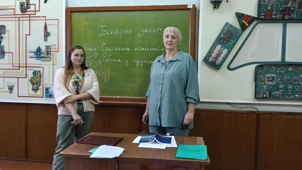 Викладачем кафедри авіаційного транспорту 29 вересня 2025року, Олександрою Бойко за участі штатного психолога Кременчуцького льотного коледжу Харківського національного університету внутрішніх справ Оксаною Тріско для здобувачів освіти 2 курсу спеціальності 272 «Авіаційний транспорт (Оператор безпілотних літальних апаратів)» було проведено бінарне заняття з навчальної дисципліни «Людський фактор та обмеження» за темою: «Соціальна психологія. Обмін інформацією та спілкування в колективі».