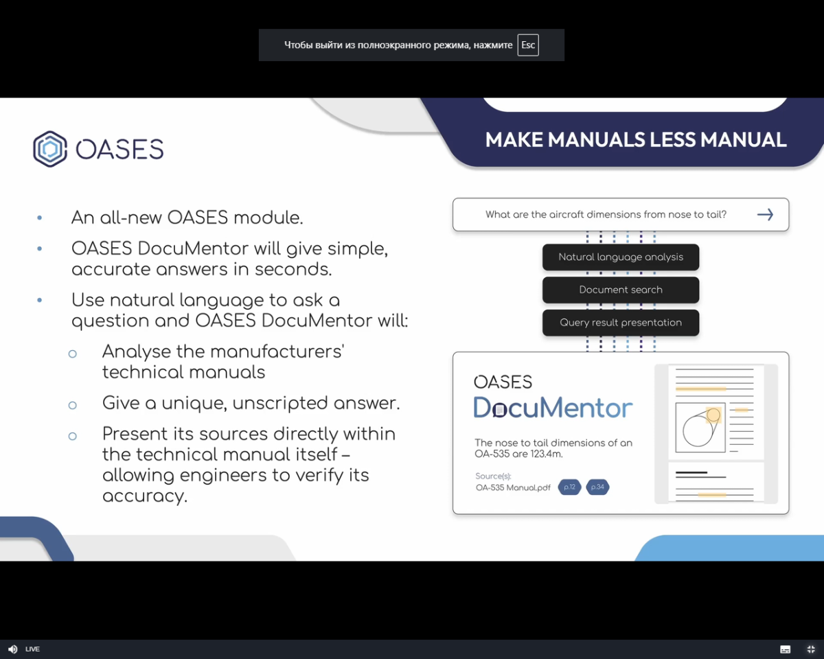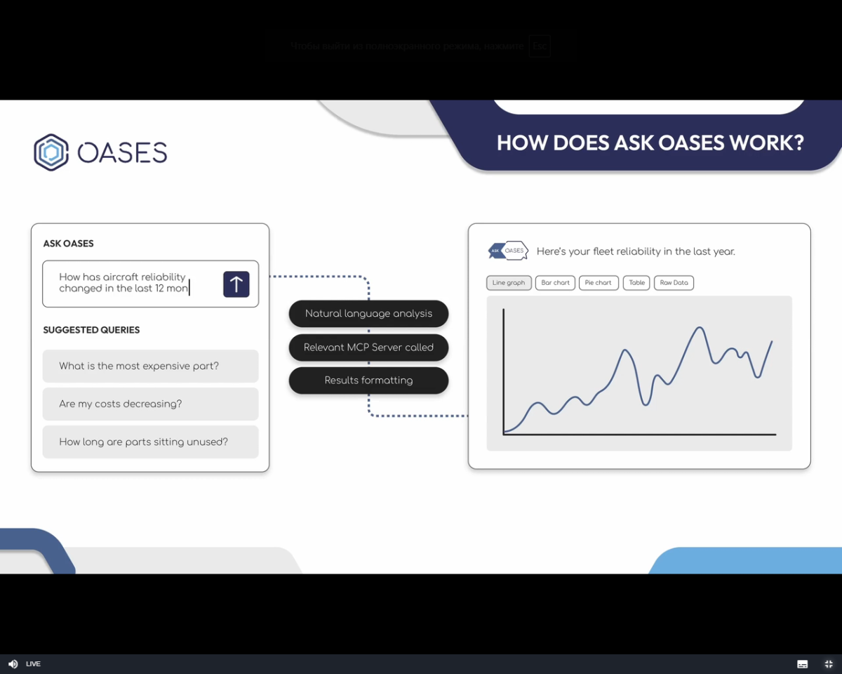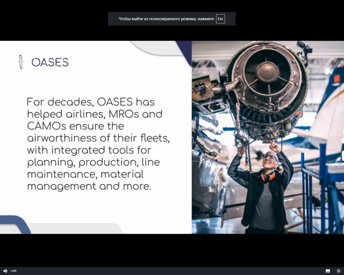 23 жовтня 2025 року науково-педагогічні працівники та здобувачі освіти Кременчуцького льотного коледжу Харківського національного університету внутрішніх справ, за сприяння групи міжнародних зв’язків та міжвузівської роботи, долучилися до Міжнародного вебінару «Інтелектуальна платформа управління технічним обслуговуванням, ремонтом та експлуатацією нового покоління з інструментами на основі штучного інтелекту». Вебінар відбувався онлайн у форматі презентацій, демонстрацій систем та інтерактивного спілкування з фахівцями галузі, які продемонстровали нову платформу управління технічним обслуговуванням авіаційної техніки від OASES та AI‑інструментів: OASES Lumina, ASK OASES та OASES DocuMentor.
