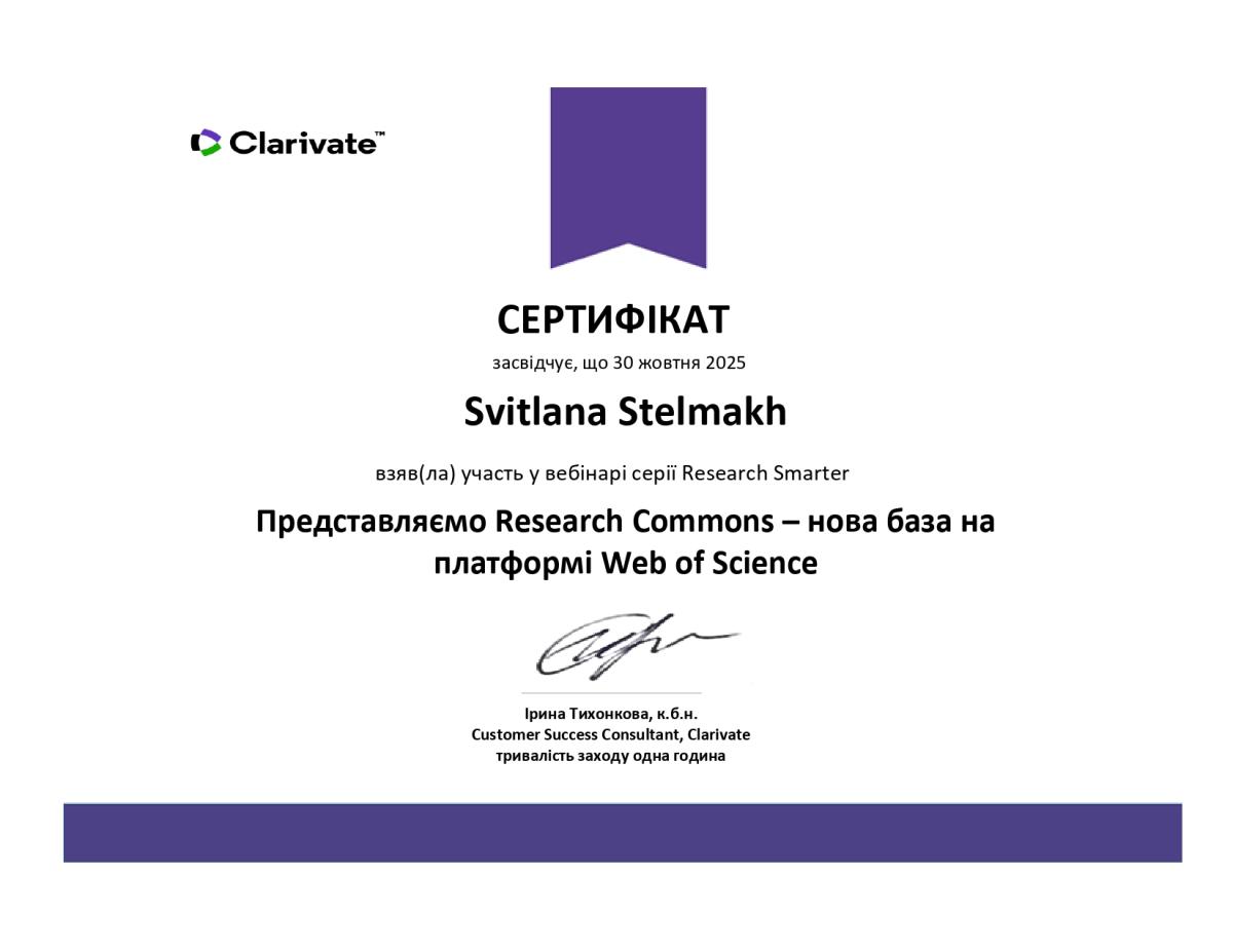 30 жовтня 2025 року співробітники коледжу взяли участь у вебінарі «Research Commons – нова база на платформі Web of Science», організатором якого виступила компанія Clarivate.