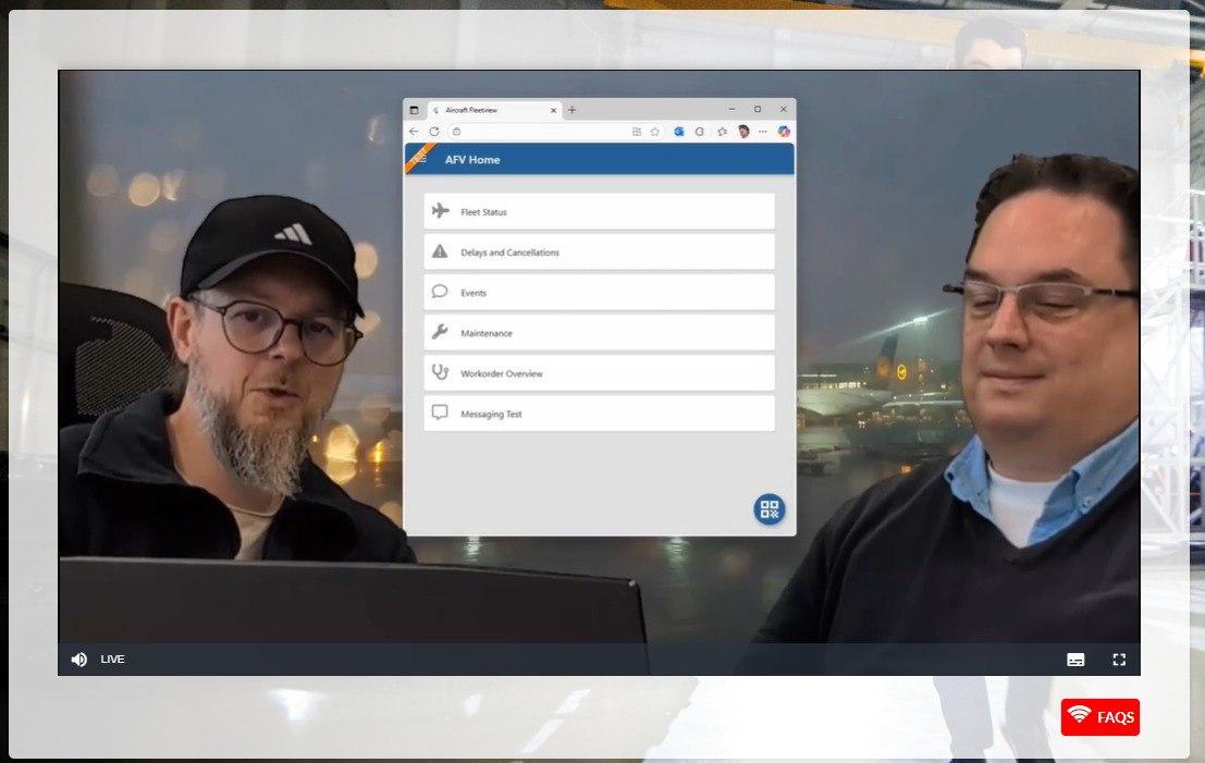 Учасники мали змогу побачити, як додаток полегшує роботи авіаційних фахівців: пілоти можуть перевіряти технічний стан повітряного судна перед польотом і зв'язуватися з CAMO для отримання дозволу на виліт; Центр управління технічним обслуговуванням (MCC) контролює авіапарк у реальному часі, замінюючи статичні PDF-звіти інтерактивним переглядом; технічні екіпажі можуть бачити робочі замовлення.