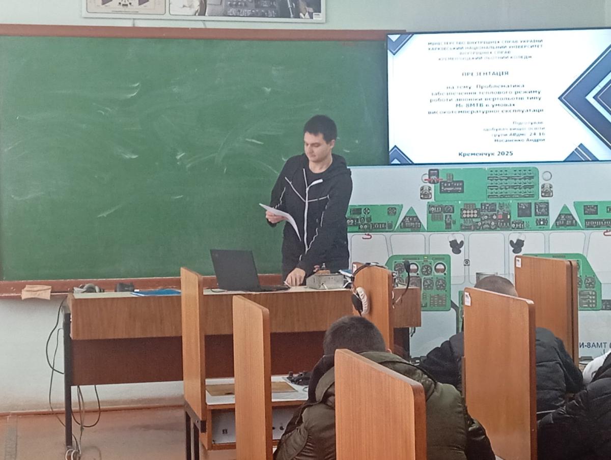 - «Проблематика забезпечення теплового режиму роботи авіоніки вертольотів типу Мі-8МТВ в умовах високотемпературної експлуатації» з якою виступив Андрій Носаненко (АВдмс-24-1б).