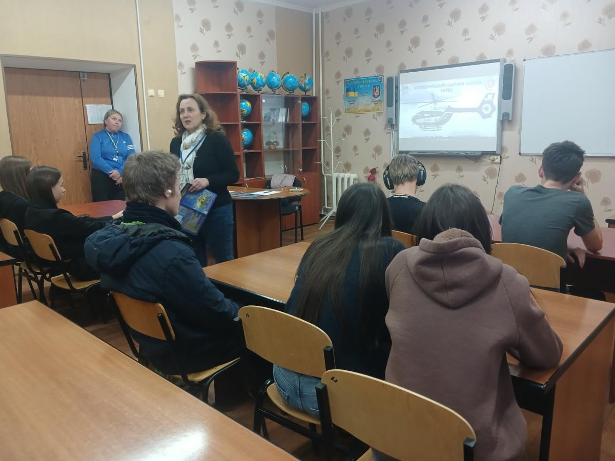25 листопада 2025 року фахівець відділу соціально-гуманітарної, виховної та профорієнтаційної роботи Кременчуцького льотного коледжу ХНУВС Тетяна Самчішина провела профорієнтаційну зустріч з випускниками ліцею №17 м. Кременчук.