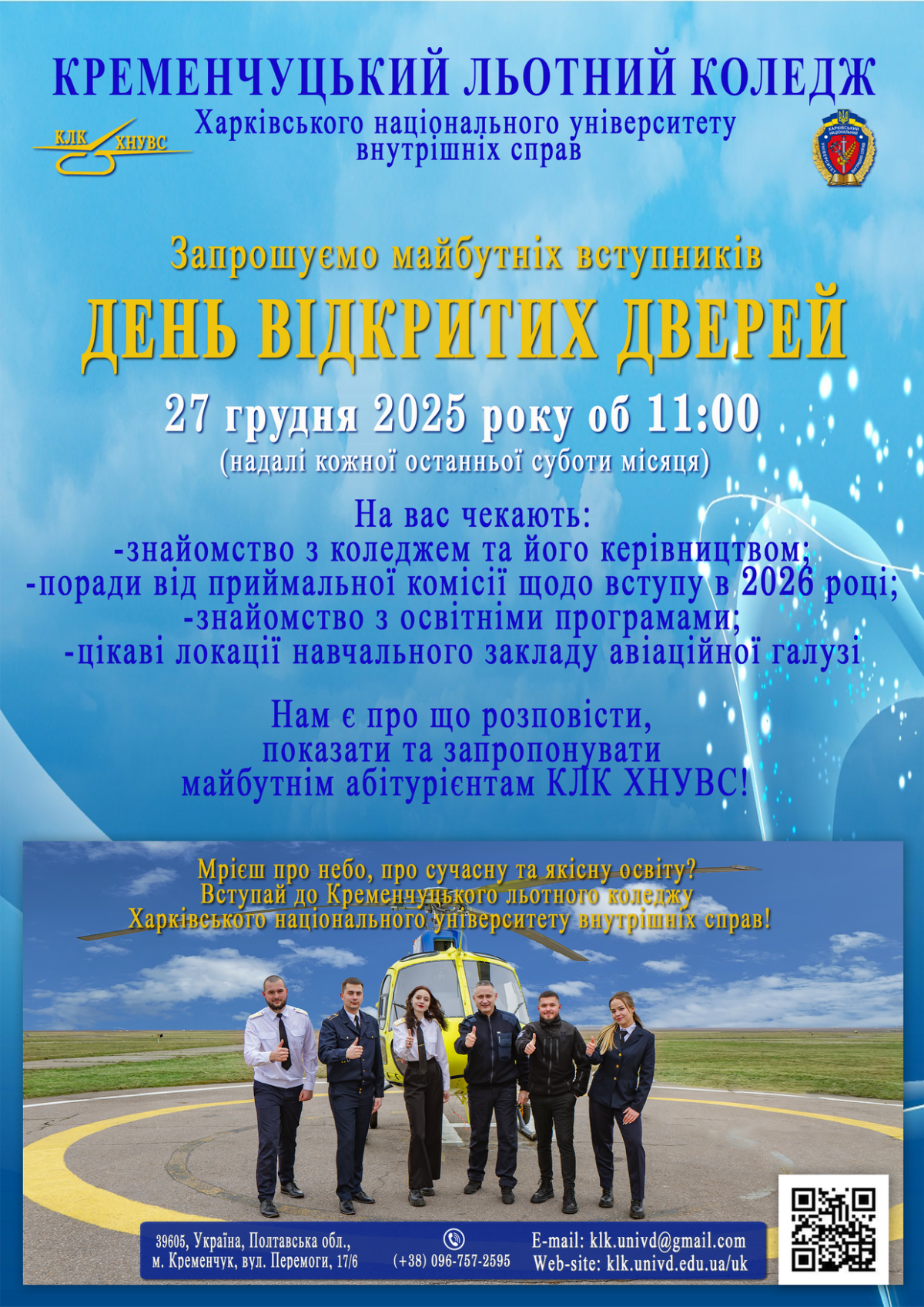 Кременчуцький льотний коледж ХНУВС і надалі активно працюватиме над тим, щоб знайомити молодь із престижними авіаційними спеціальностями та відкривати двері у професійне майбутнє.