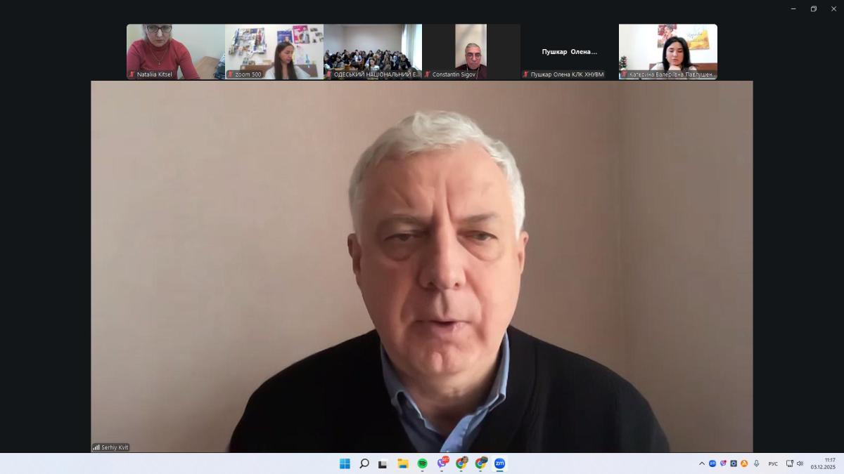 У рамках проведення Тижня доброчесності 3 грудня 2025 року учасники освітнього процесу, зокрема заступник директора коледжу з освітньої та наукової діяльності Олена Цимбалістова разом зі співробітниками відділу організації освітнього процесу та відділу організації наукової діяльності, завідувачами та науково-педагогічними, педагогічними працівниками кафедри управління, соціально-гуманітарних та фундаментальних дисциплін, кафедри авіаційного транспорту і кафедри електронних комунікацій, радіотехніки та авіоніки, а також здобувачі освіти Данило Міньків, Богдан Пузир, Кіріл Балакарєв, Роман Підгарін, Микола Слєпко доєдналися до онлайн-лекції «Доброчесність як кар’єрна стратегія: як знайти свою справу й залишатися стійким у складних системах». Спікером онлайн-заходу виступив Сергій Квіт – доктор філологічних наук, професор, президент Національного університету «Києво-Могилянська академія», міністр освіти і науки України (2014-2016), голова Національного агентства із забезпечення якості вищої освіти (2019-2022).