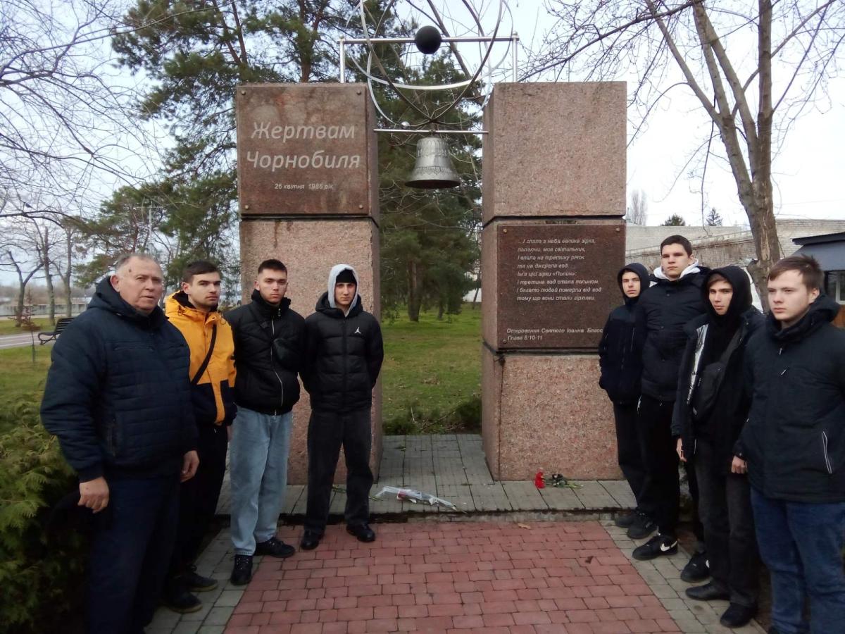 Наступного дня, 14 грудня 2025 року, з нагоди Дня вшанування учасників ліквідації наслідків аварії на Чорнобильській АЕС, здобувачі освіти коледжу долучилися до Всеукраїнських заходів, злкрема, церемонії покладання квітів до пам’ятного знаку «Жертвам Чорнобиля». Захід став символом глибокої шани та вдячності тим, хто ціною власного життя і здоров’я зупинив техногенну катастрофу світового масштабу.