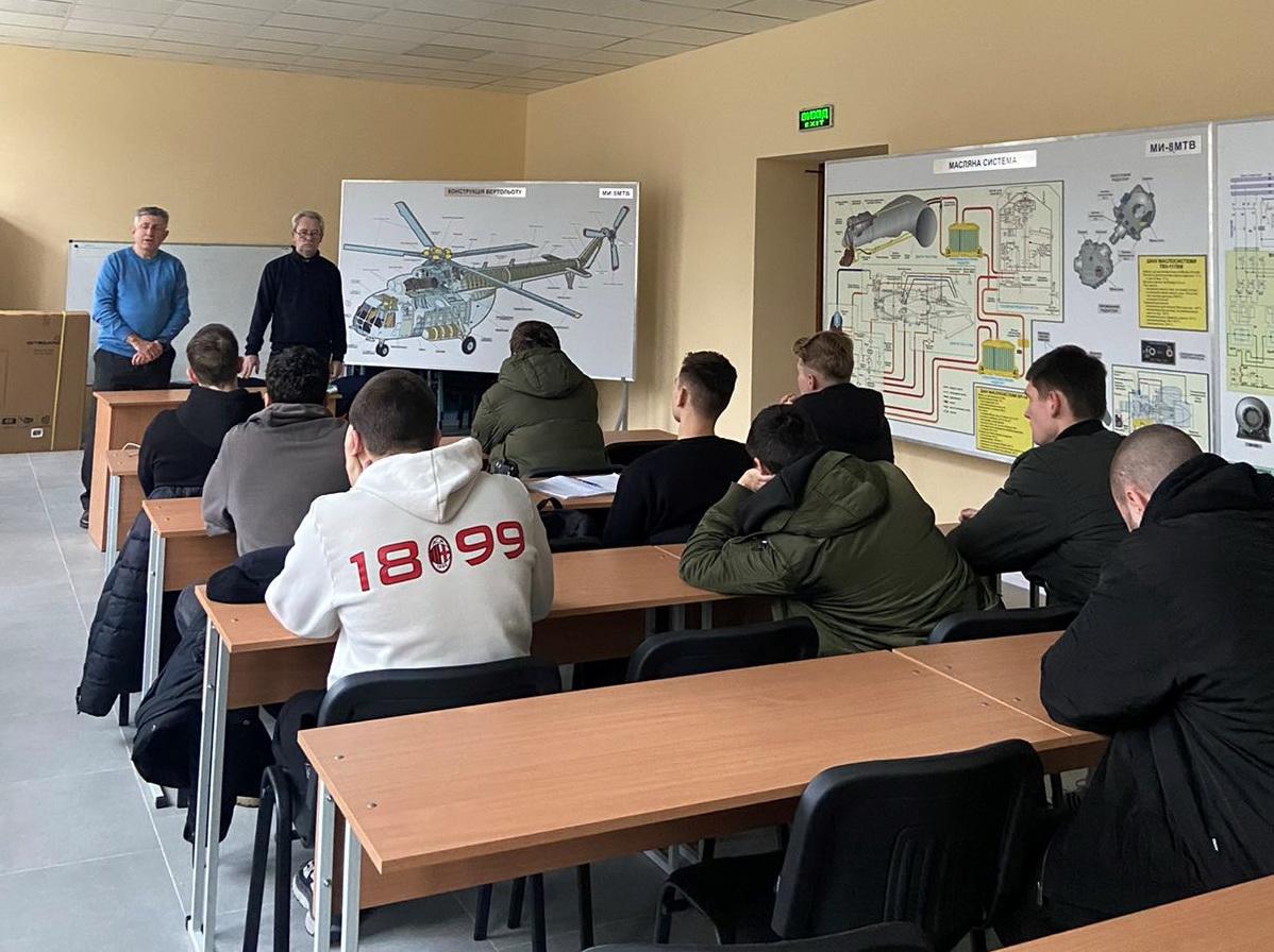 Розпочинаючи заняття, Володимир Лазеба розповів про специфіку своєї роботи. В межах бінарного заняття були виконані розрахунки часу настання темряви на аеродромі взльоту та посадки. Далі відбулося активне обговорення таких питань: «Особливості вертольотоводіння на малих та обмежено малих висотах», «Польоти у ночі», «Польоти в гірських місцевостях»,