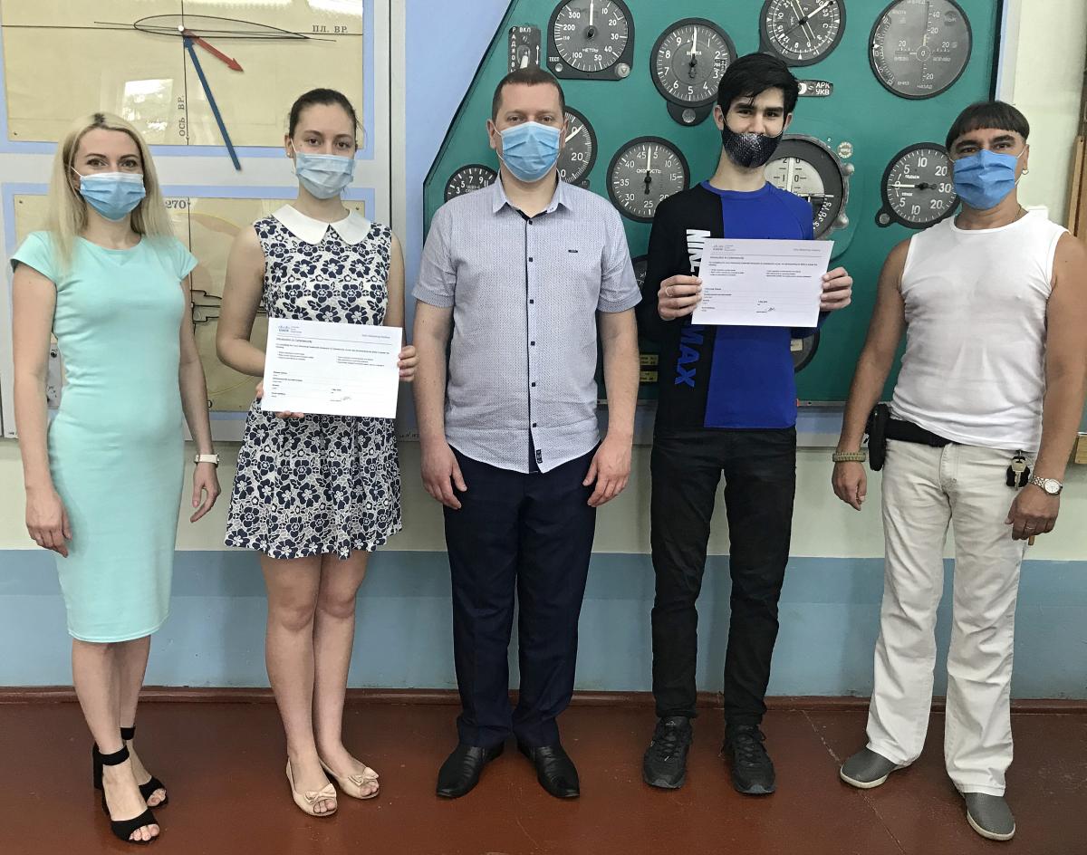 Заступник директора Кременчуцького льотного коледжу ХНУВС кандидат технічних наук Юрій Шмельов, начальник наукового відділу кандидат економічних наук Марина Петченко, керівник курсів академії CISCO спеціаліст вищої категорії Кирило Котляров привітали курсантів Марину Зайчук та Валерія Чепурного з успішним завершенням курсу за напрямком Introduction to Cybersecurity (Вступ до кіберзахисту) та отриманням сертифікатів від американської транснаціональної корпорації.