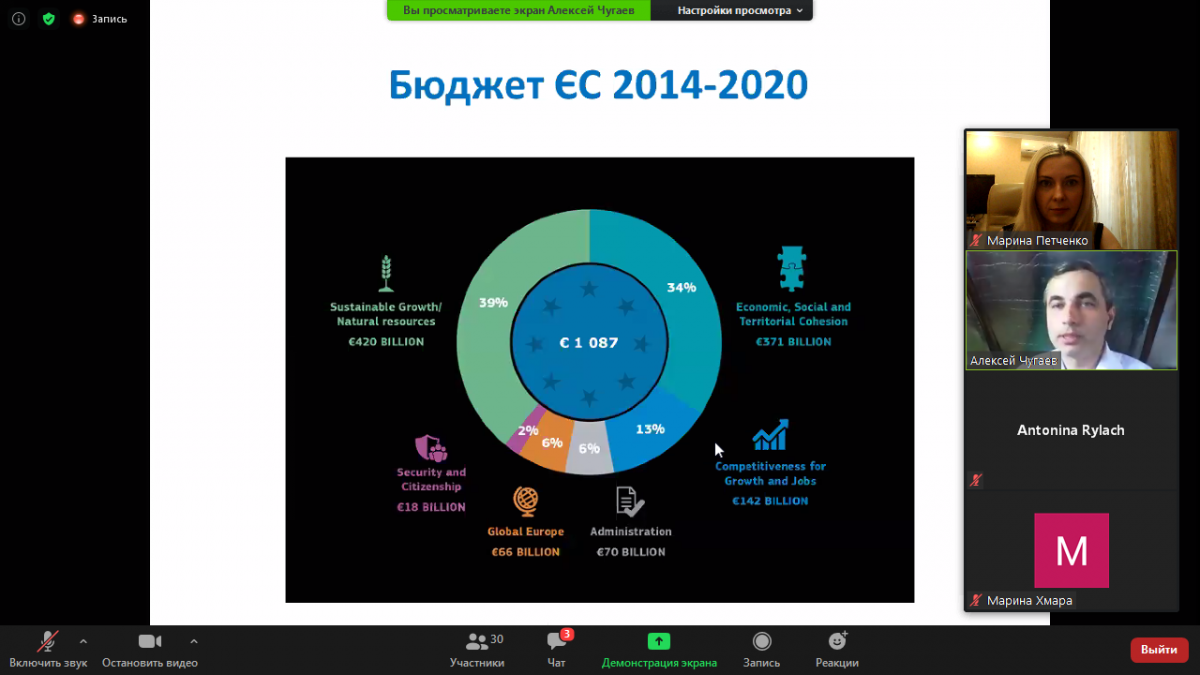 Спікером вебінару виступив доктор економічних наук, доцент, заступник адміністративного координатора, експерт з економіки Центру досконалості Жана Моне ІМВ КНУ ім. Тараса Шевченка Олексій Чугаєв. Організатори вебінару: кандидат економічних наук, науковий співробітник науково-дослідної частини Інституту міжнародних відносин КНУ ім. Тараса Шевченка, співзасновниця та партнер Школи молодого українського дипломата Наталія Рилач та кандидат економічних наук, доцент кафедри міжнародного бізнесу Інституту міжнародних відносин КНУ ім. Тараса Шевченка Марина Хмара.