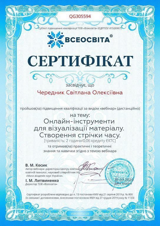Викладачка циклової комісії філологічних дисциплін Кременчуцького льотного коледжу Харківського національного університету внутрішніх справ Світлана Чередник взяла участь у вебінарі на тему «Онлайн-інструменти для візуалізації матеріалу. Створення стрічки часу».
