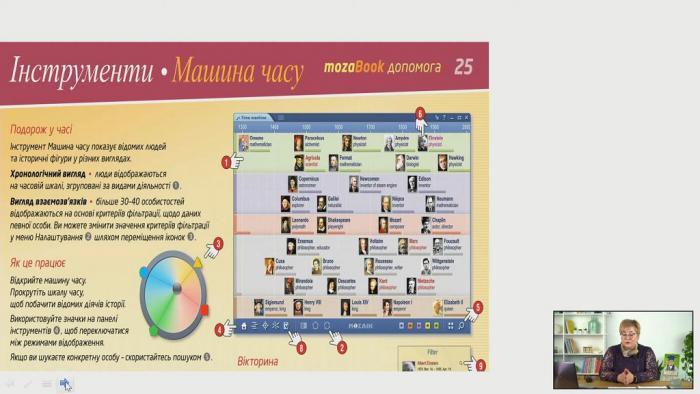 Під час прямого формату вебінару спікерка ознайомила педагогічних працівників із видами онлайн-інструментів для візуалізації матеріалу та їх роботою, продемонструвала шляхи пошуку ресурсів для створення стрічки часу.