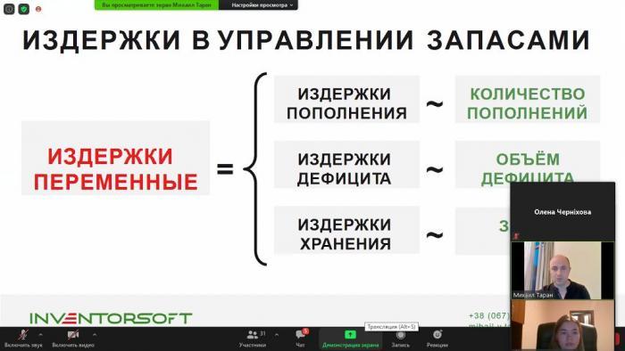 Голова циклової комісії економіки та управління кандидат економічних наук Олена Цимбалістова та викладачки циклової комісії економіки та управління кандидат економічних наук Марина Харченко й Олена Черніхова відвідали вебінар «Побудова ефективної системи управління запасами як інструмент для збільшення прибутку компанії». Вебінар був організований Київською Логістичною Школою спільно з компанією «Стиль-Д».