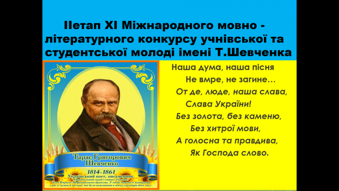 Курсант Назар Кисельов братиме участь у ІІ (обласному) етапі ХІ Міжнародного мовно-літературного конкурсу учнівської та студентської молоді імені Тараса Шевченка.