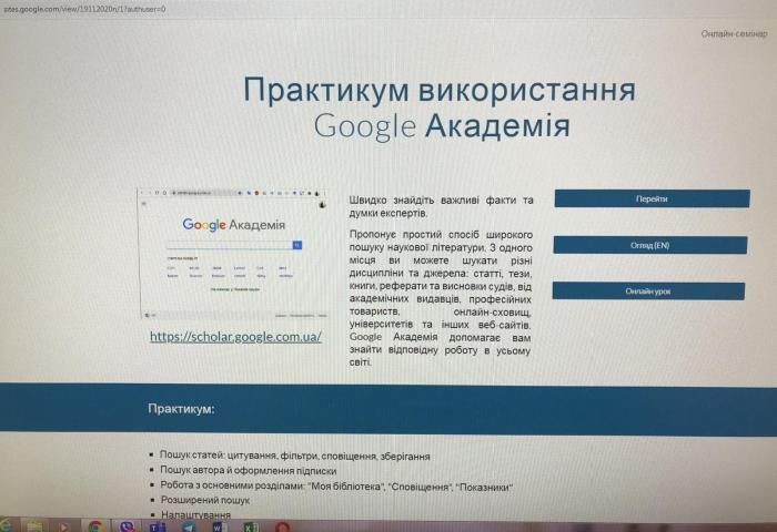 Викладачка циклової комісії філологічних дисциплін Кременчуцького льотного коледжу ХНУВС Людмила Чижова взяла участь в онлайн-семінарі «Цифрові інструменти Google для науковців», організованого Google спільно з Міністерством освіти та науки України.