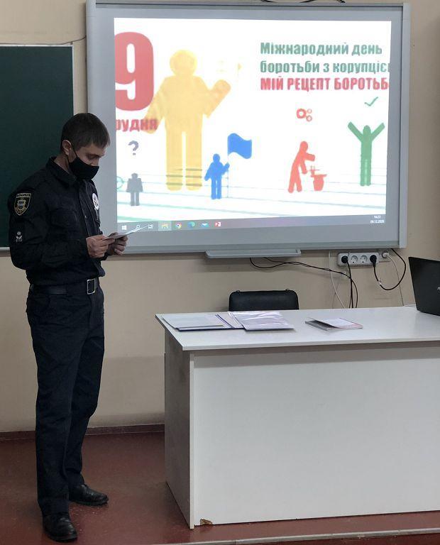 У Кременчуцькому льотному коледжі Харківського національного університету внутрішніх справ відбувся Антикорупційний урок. Його провели: старший інспектор ВКЗ БПП в місті Кременчук УПП в Полтавській області ДПП майор поліції Олексій Літвінчук спільно із заступником директора коледжу кандидатом технічних наук Юрієм Шмельовим та фахівцями відділу соціально-гуманітарної, виховної та профорієнтаційної роботи. Захід був проведений для працівників коледжу з нагоди Міжнародного дня боротьби з корупцією у межах проведення Всеукраїнської акції «16 днів проти гендерно зумовленого насилля».