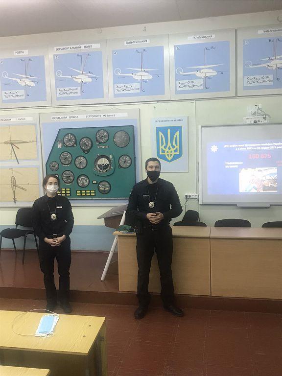 Для курсантів Кременчуцького льотного коледжу Харківського національного університету внутрішніх справ проведено виховну годину щодо дотримання ними транспортної дисципліни та Правил дорожнього руху. У заході взяли участь інспектори ВЗГ БПП в місті Кременчуці старший лейтенант полiцiї Надія Шило, майор полiцiї Роман Соколов, заступник директора коледжу кандидат технічних наук Юрій Шмельов та фахівці відділу соціально-гуманітарної, виховної та профорієнтаційної роботи. Здобувачі вищої освіти отримали змогу одягнути алкоокуляри та побачити світ особи, яка знаходиться за кермом в стані алкогольного сп'яніння, та спробувли скоординувати власні рухи тіла та пересування в просторі.