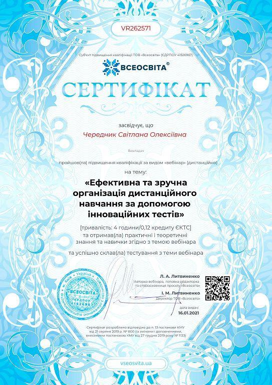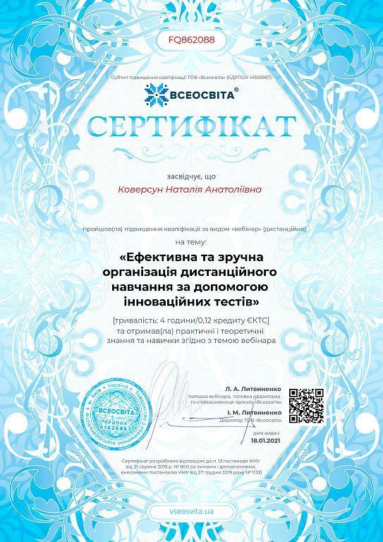 Викладачі циклової комісії філологічних дисциплін Кременчуцького льотного коледжу Валентина Гардаш, Наталія Коверсун, Світлана Чередник взяли участь у вебінарі «Ефективна та зручна організація дистанційного навчання за допомогою інноваційних тестів» проєкту «Всеосвіта».