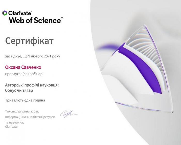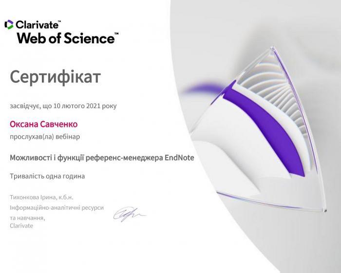 Голова циклової комісії філологічних дисциплін Кременчуцького льотного коледжу Харківського національного університету внутрішніх справ Оксана Савченко взяла участь у вебінарах «Авторські профілі науковця: бонус чи тягар» і «Можливості і функції референс-менеджера EndNote», які були проведені на платформі Webex.
