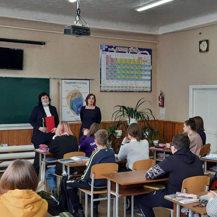 Голова циклової комісії філологічних дисциплін Кременчуцького льотного коледжу Харківського національного університету внутрішніх справ Оксана Савченко разом із викладачкою циклової комісії природничих дисциплін Світланою Грибановою провели профорієнтаційну зустріч з учнями 9-х класів загальноосвітньої школи № 24 міста Кременчука.