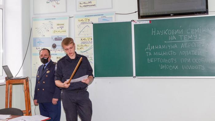 На цикловій комісії «Аеронавігації» в кабінеті «Аерогідрогазодинаміки та динаміки польоту» викладачем-методистом доцентом, кандидатом технічних наук Володимиром Тягнієм проведено науковий семінар на тему «Динамічна аеропружність та міцність лопатей НГ вертольоту при особливих умовах польоту» для курсантів спеціальності «Авіаційний транспорт», спеціалізації «Аеронавігація».