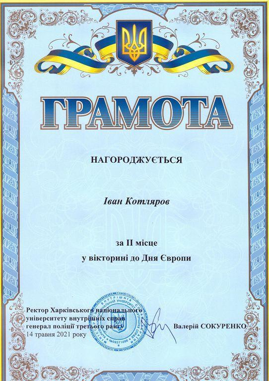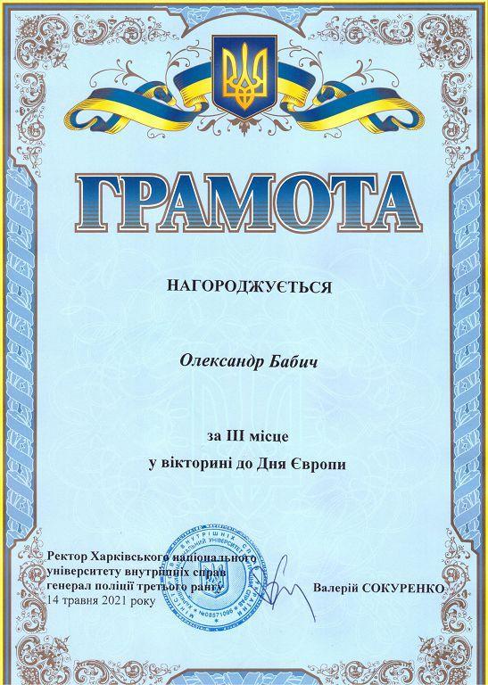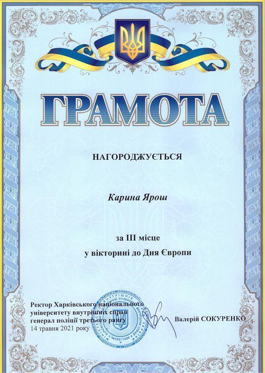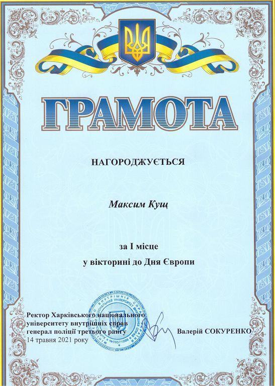 У Харківському національному університеті внутрішніх справ у межах Всеукраїнської інформаційної кампанії EUкраїна проведено вікторину до Дня Європи. У заході взяли участь здобувачі вищої освіти ХНУВС та його відокремлених структурних підрозділів – Сумської філії та Кременчуцького льотного коледжу.