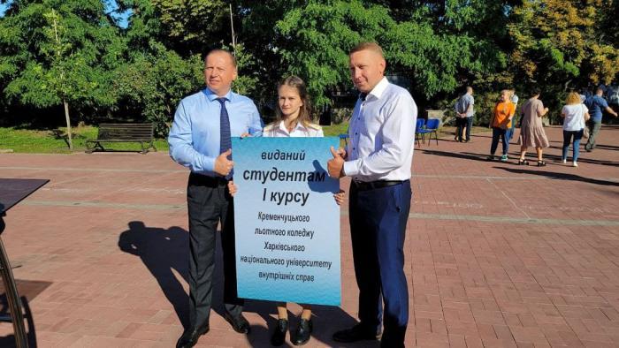 Відбулося вручення першокурсникам символічного атрибуту навчання – «Студентського квитка». Право його отримати було надано єдиній першокурсниці-пілотесі Катерині Фарафоновій. Від імені усіх першокурсників вона пообіцяла добре вчитися й гордо нести звання курсанта та студента Кременчуцького льотного коледжу.