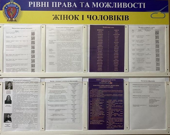 У підготовці стендів взяв участь авторський колектив: помічниця ректора з гендерних питань ХНУВС Оксана Цукан, відповідальна з гендерних питань у КЛК ХНУВС Марина Петченко, співробітники відділу організації наукової роботи та гендерних питань Вадим Орел, Ольга Глазунова.